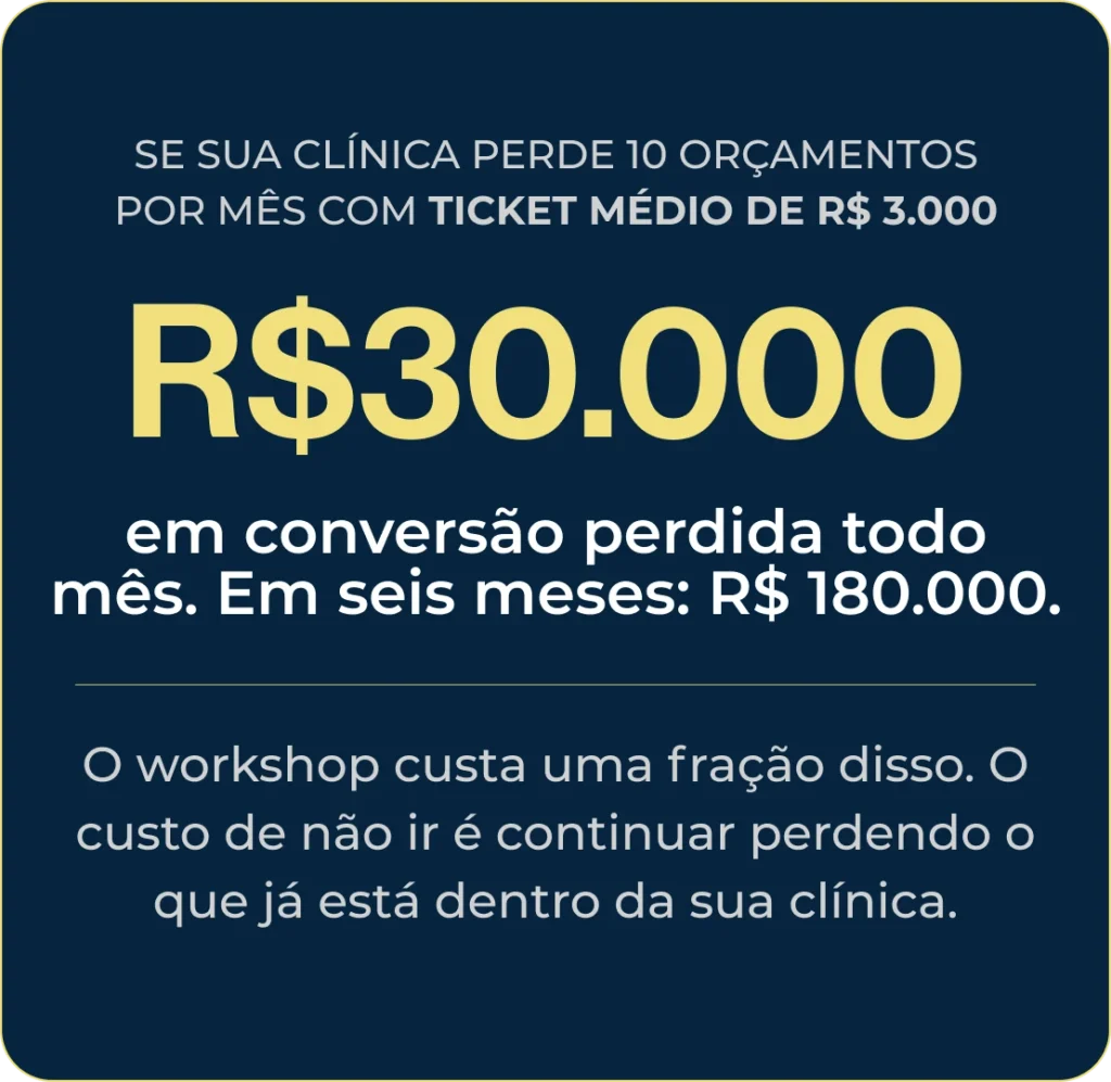 Paciente que não fecha orçamento é lucro perdido. Em um dia, você aprende a parar de perder o que já está dentro da sua clínica.